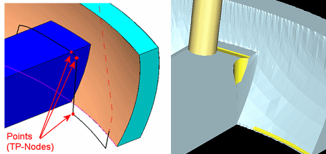 The system added TP-Nodes between the original ones in order to create a gouge free motion when moving around the check faces obstacle.