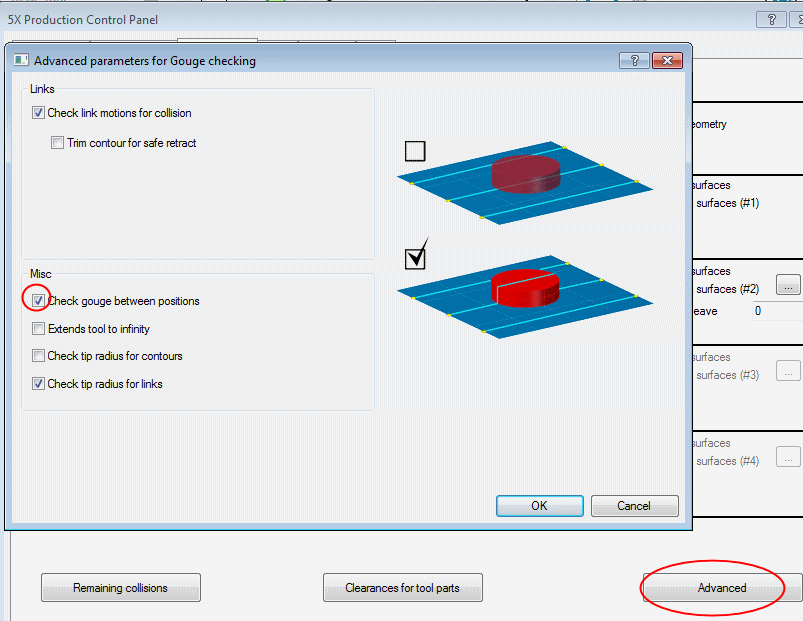 Ensure that the Check Gouge Between Positions checkbox is marked.
