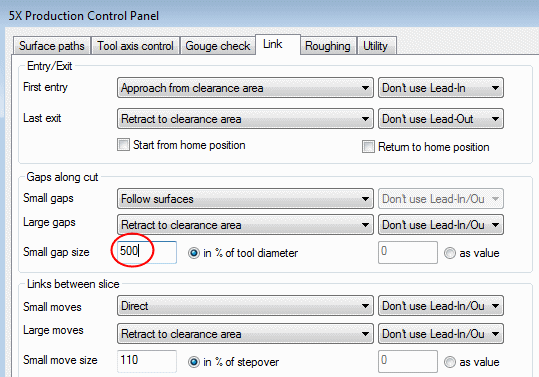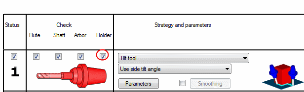 In the 1st gouge check group, mark the Check Surfaces (#1) check box.