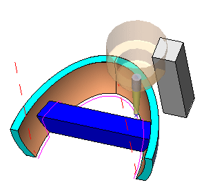 Notice that the cutter doesn’t gouge the faces (as before), but the holder gouges the vertical box on the side. Let’s assume that this is a clamping device that we want to avoid gouging.