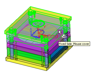 The Mold Base is loaded. The tree contains the relevant sub assemblies: Fixed Side, Ejection System, and Movable side.