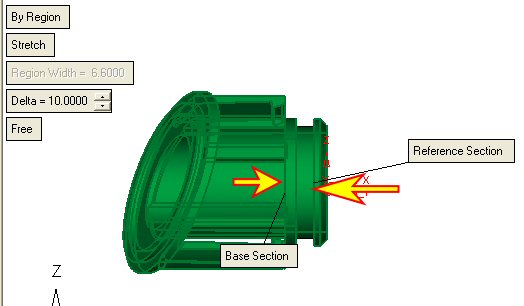 Select the Base Section and the Reference Section as indicated by the arrows in the pictures below: