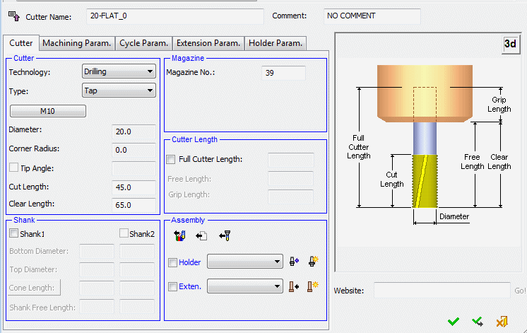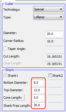 Select Tap Tool. Unmark the Shank checkbox.