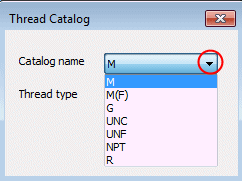 The Thread Catalog dialog, which contains the thread types, is displayed.
