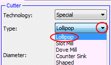 Special Tools include 4 types: Lollipop, Slot Mill, Dove Mill, and Counter Sink.