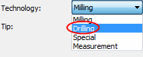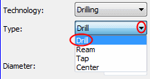 When editing a cutter, only the Milling and Special options are available. In the case of a drill tool, the dropdown list is grayed out and the Drill option is displayed.