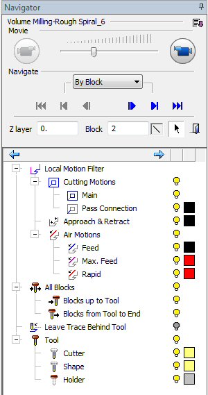 The Navigator dialog replaces the old Wireframe simulator and provides more capabilities to control and navigate the toolpath.
