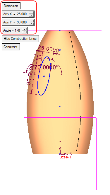 Use the Dimension option to set the defined ellipse.