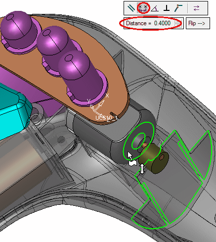 With this option, the tool axis will be tilted at a fixed angle relative to the chosen axis. The tilt axis can be towards the X, Y, and Z axis or to any line created in the geometry. Tilt axis and surface normal build a plane in which the tool tilts.