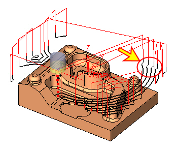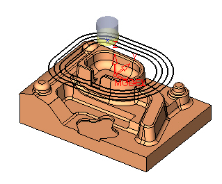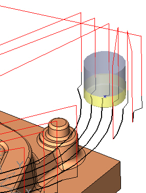 Note that now Cimatron hides the trace of the passes. The tool proceeds and hides the previous pass that it just left.