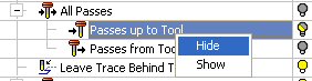 Right-click on Passes Up To Tool and select Hide. (Only the current pass is now displayed.)