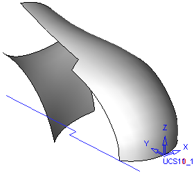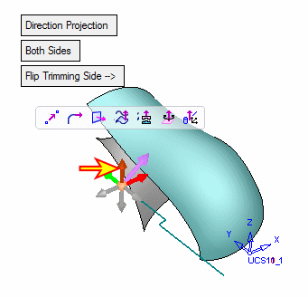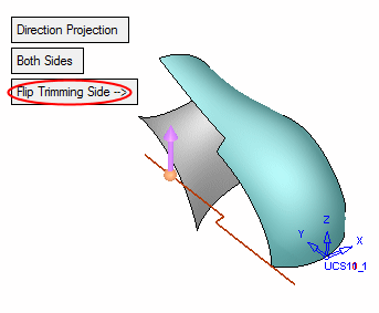 In this case, even though the contour is simple due to the complex shape of the face to be trimmed and the large gap between the contour and the face, the Direction Projection option is used.