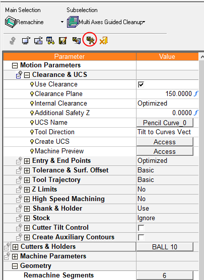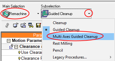 For full 5X machining of the pre-defined segments, start a new procedure and select Multi Axes Guided Cleanup.