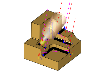 Each segment is machined according to its assigned direction. Still, there are missing motions due to holder collision.