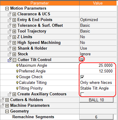Activate the Cutter Tilt Control with its default setting and execute the procedure.