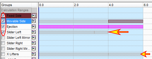 Select only the first four groups to participate in the calculation. Groups that are not selected will be ignored; therefore, they will remain in their original location during the simulation.