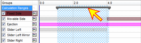 The Calculation Range bar defines the limits of the area to be calculated. The function will calculate the area between the start and the end markers of the range bar. Select a range by clicking the area of the range on the top row (the row of the range definition bar).
