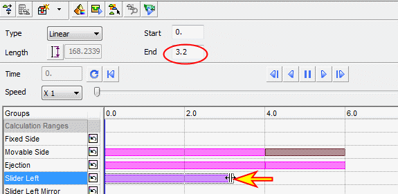 Create another motion to the slider in -Z direction, Delta = 40 (to 4 sec).