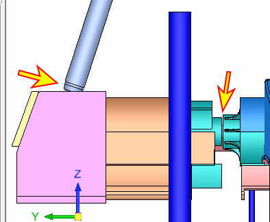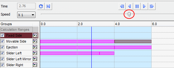 Turn on the model work parting sets. Drag the slide bar to view the motions.