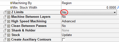 Open the Rough procedure and under the Tool Trajectory menu, notice that there is no limit for the Z Top and Z BottomZ Top and Z Bottom of the toolpath.