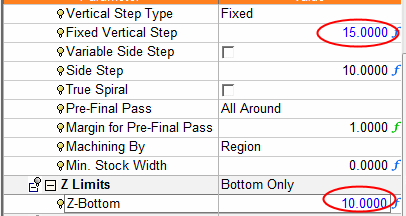 Rerun the procedure. Set the Z Bottom to 10 and the Fixed Vertical Step (down step) to 15.