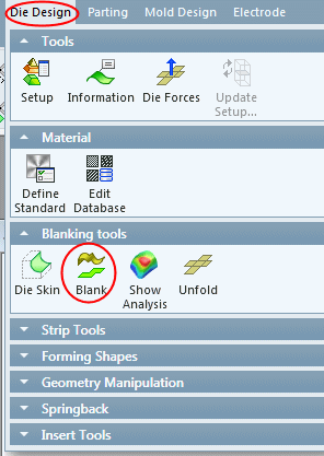Click Die Design > Blanking Tools > BlankDie Design > Blanking Tools > Blank.