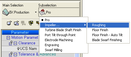 In 5X Advanced, click Pro >Impeller > Roughing.