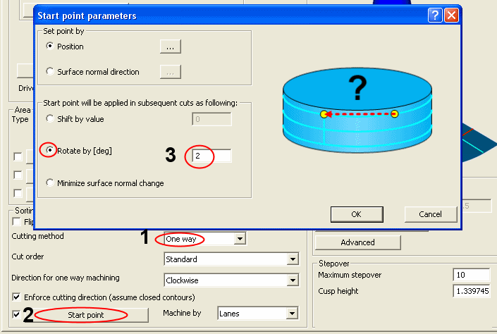 The shifted start point is the result of the Rotate by [Deg] 2 that was set in the Start Point dialog.