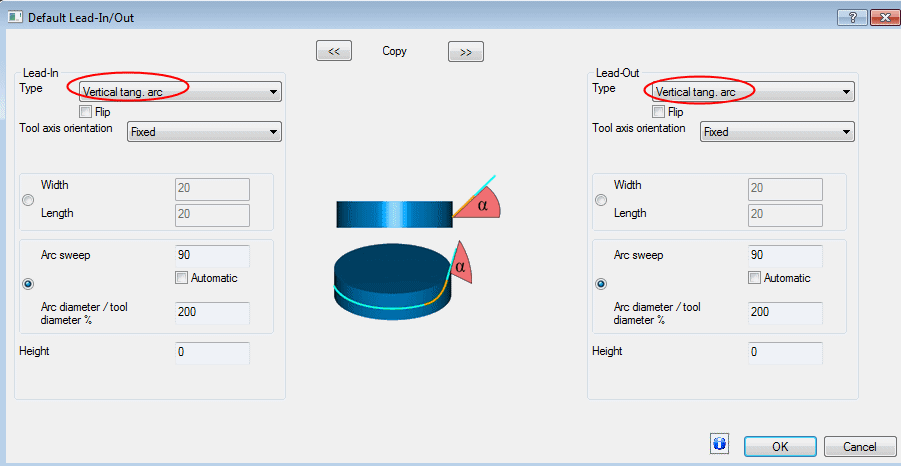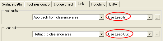 Use Lead In/Out means to do some other kind of motion than straight approach or retract. The type of macro is defined in the lower part of the dialog. There is a special Lead for entry (approach) and one for exit (retract), described as follows: